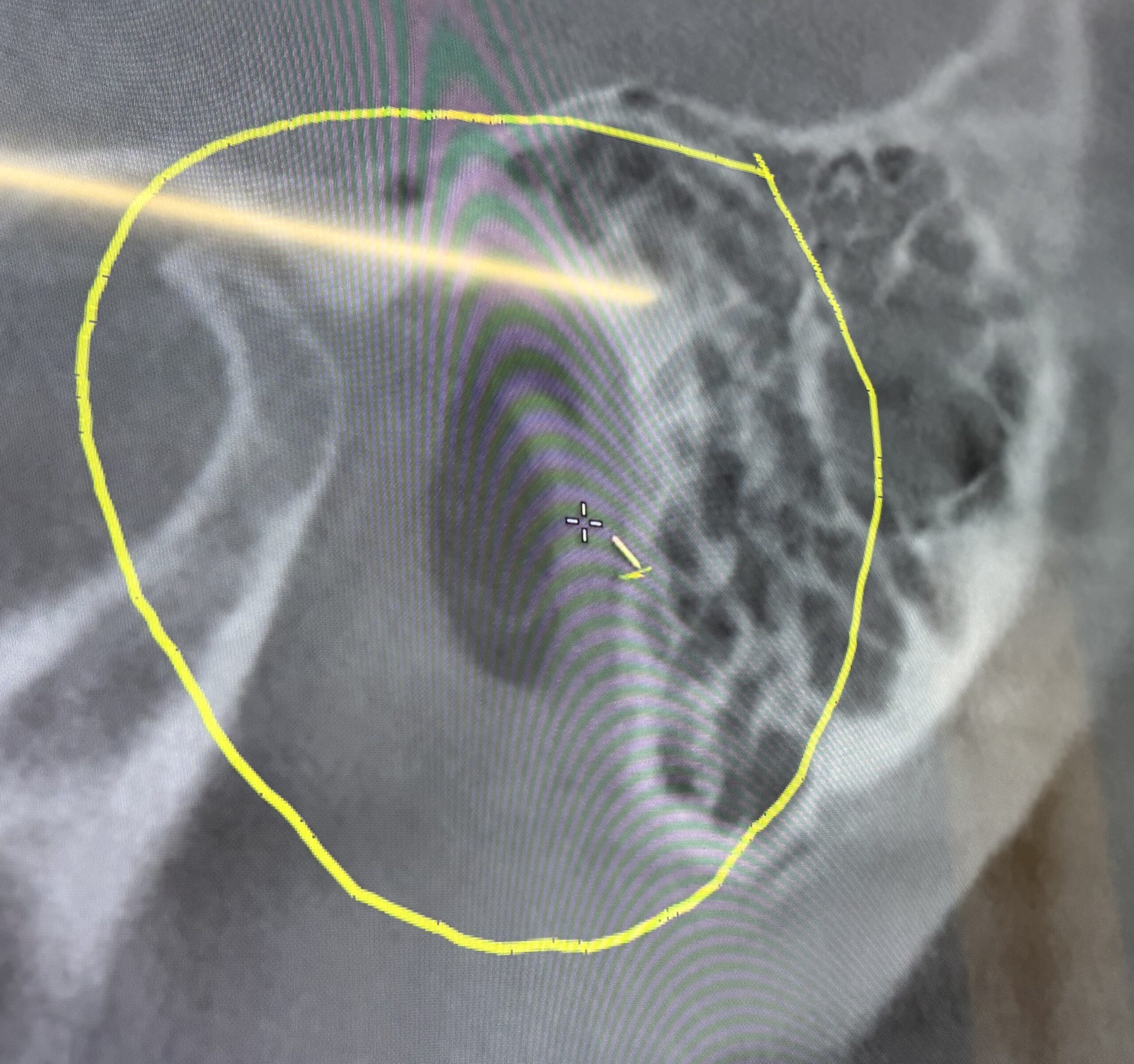 Ten days later I’m sitting with my Phoenix dentist relating my Raphe story as he pulls up my recent April scan. Unfortunately, a CBCT scan is not the appropriate scan to study Raphe. For whatever reason, I asked him to look in the Eustachian tube area based on back-and-forth conversations with my Santa Cruz osteopath about this area as a potential source of my symptoms. This unplanned conversation produced a large surprise.